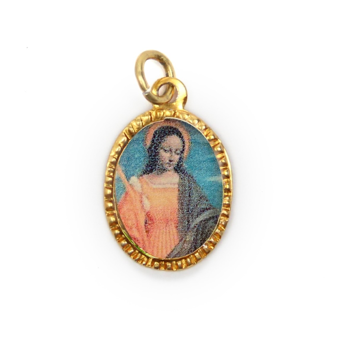 *Medalha de Alumínio Oval Dourada c/ 10un. Santa Águeda (Ágata) - 2x1,3cm.