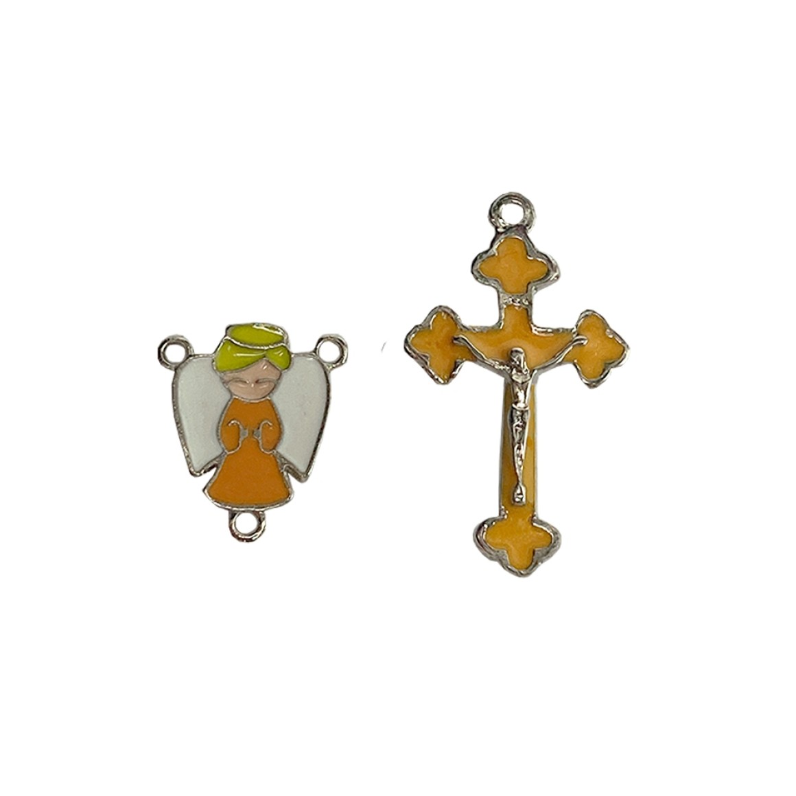 KT720105 - Kit Cruz e Entremeio Anjinho Laranja Níquel