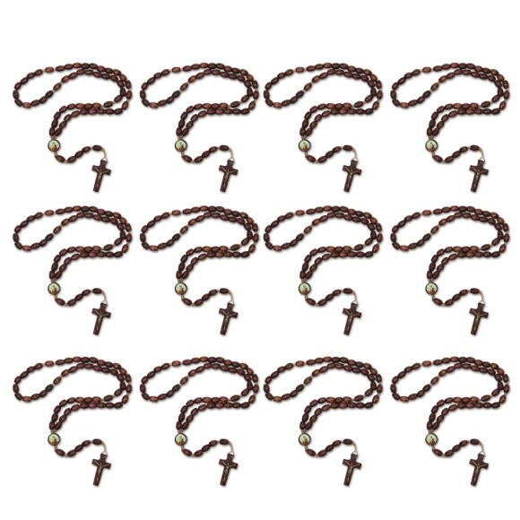 TE942416P12 - Terço São Judas Tadeu Madeira c/ 12un. - 45cm
