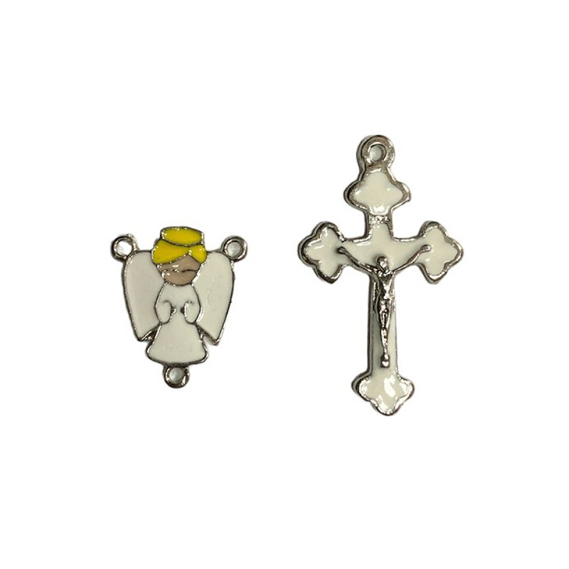 *Kit contendo 1un. Cruz e 1un. Entremeio Anjinho Branco Níquel.