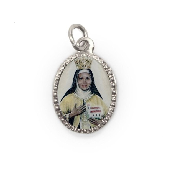 MD103642P10 - Medalha de Alumínio Oval Prata c/ 10un. Santa Efigênia - 2x1,3cm