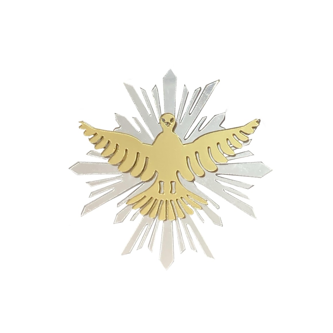 *Divino Espírito Santo resplendor em acrílico espelhado.