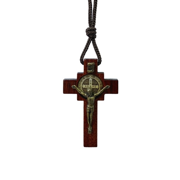 CC360740 - Cordão c/ Crucifixo Madeira São Bento - 42cm