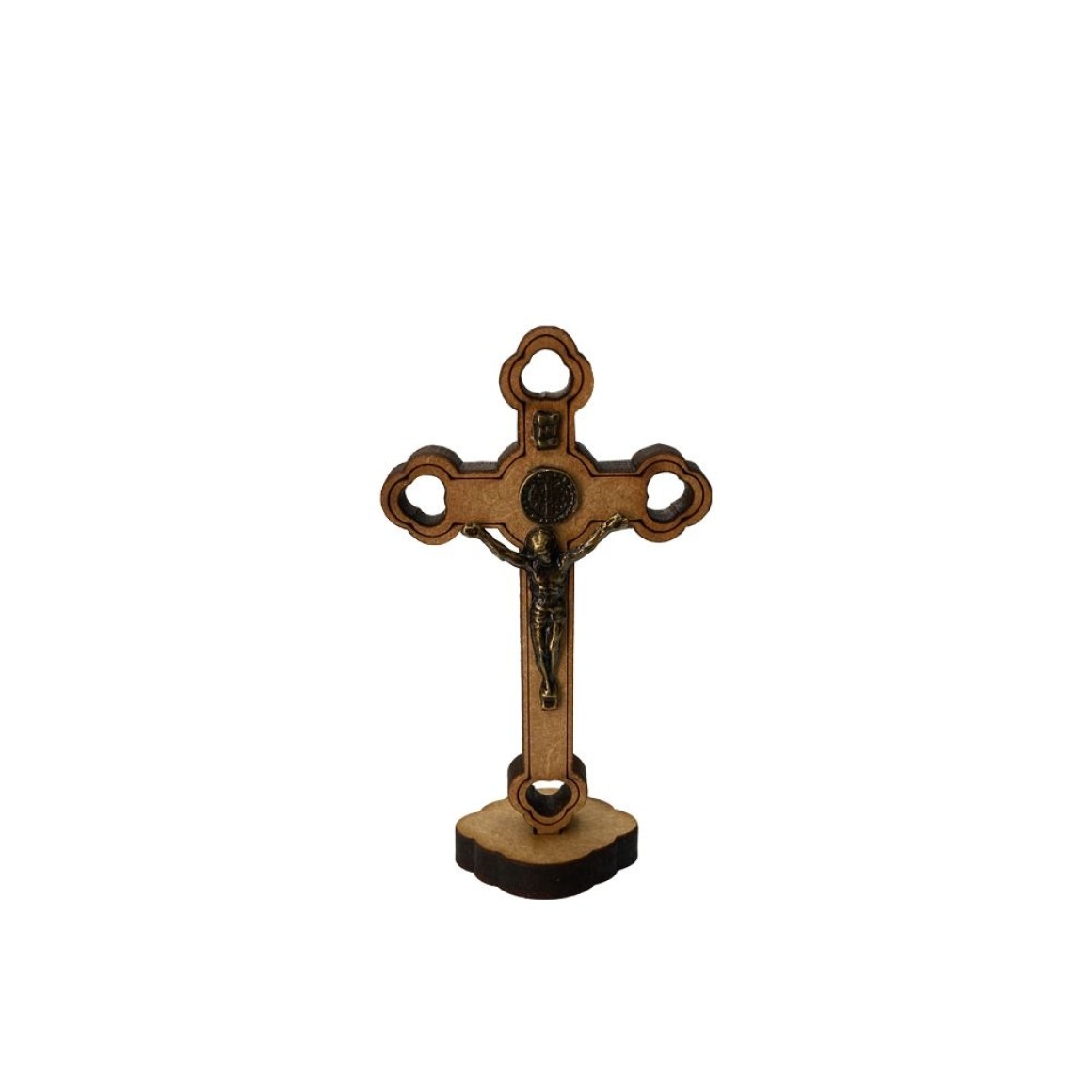 *Crucifixo de Mesa São Bento Madeira - 8,5x4,5cm.