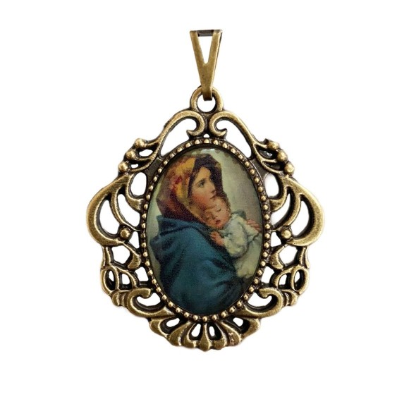 *Medalha N. Sra. Do Repouso Camafeu Ouro Velho - 4,5x4cm.