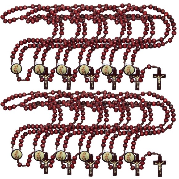 TE940026P12 - Terço N. Sra do Carmo Madeira c/ 12un - 37cm