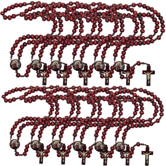 TE940096P12 - Terço N. Sra. Desatadora dos Nós Madeira c/ 12un. - 37cm