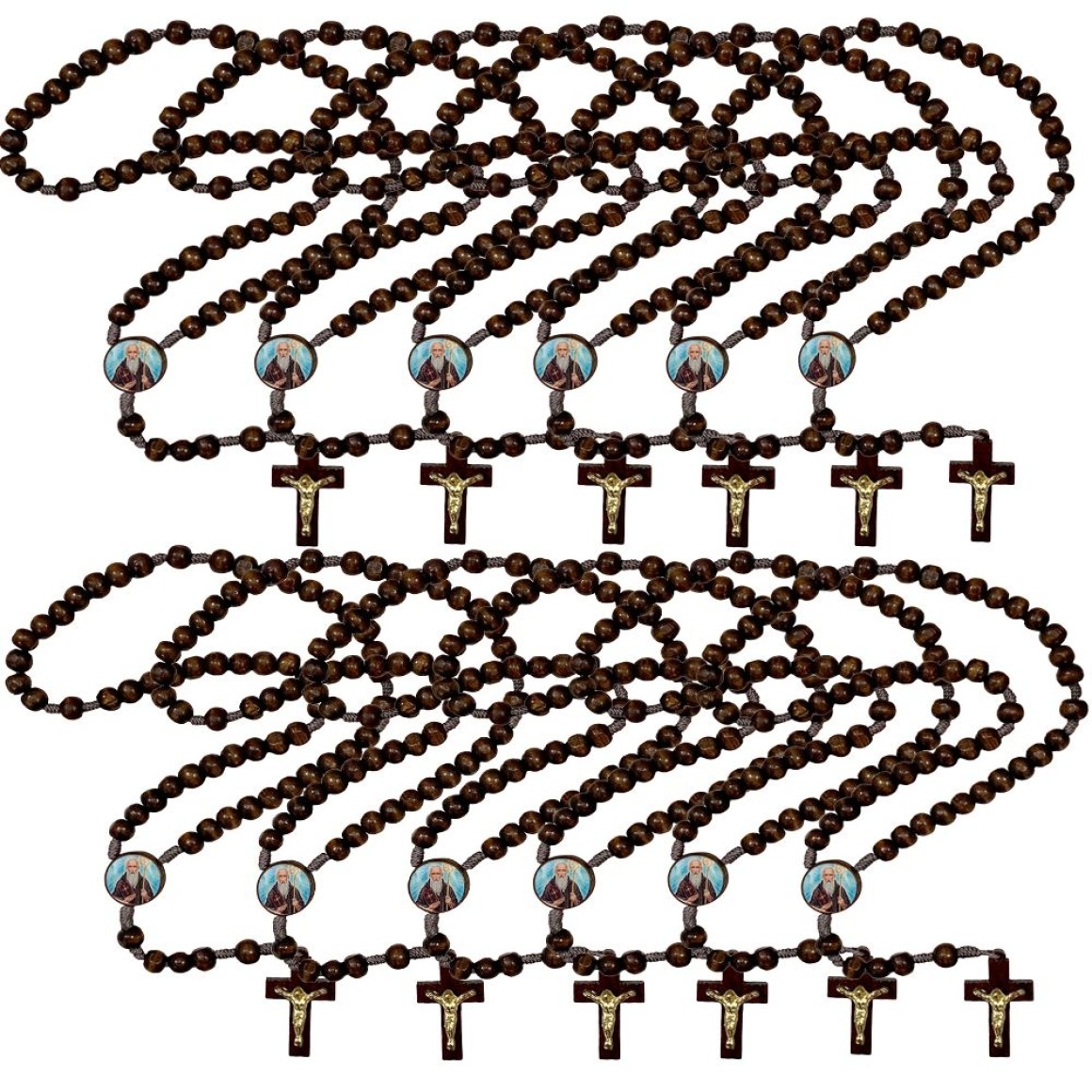 *Terço São Bento Madeira c/ 12un. - 37cm.