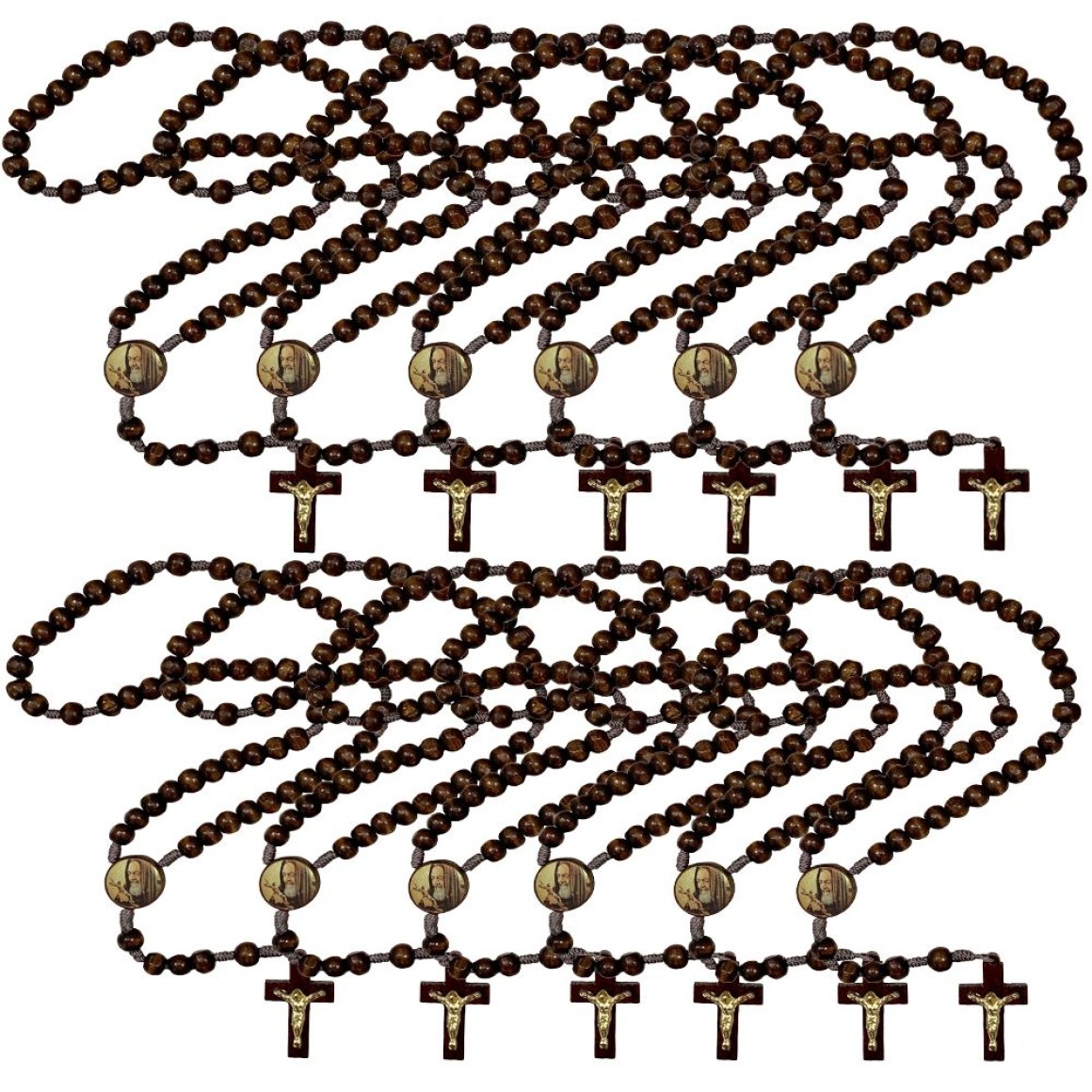 TE940460P12 - Terço São Padre Pio de Pietrelcina Madeira c/ 12un. - 37cm
