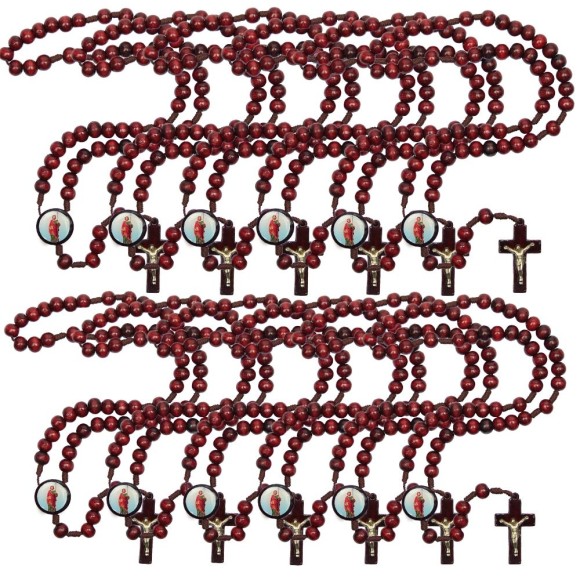 *Terço São Judas Tadeu Madeira c/ 12un. - 37cm.