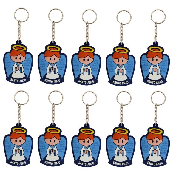 CH50800P10 - Chaveiro Santo Anjo Azul Emborrachado c/ 10un. - 11x4cm
