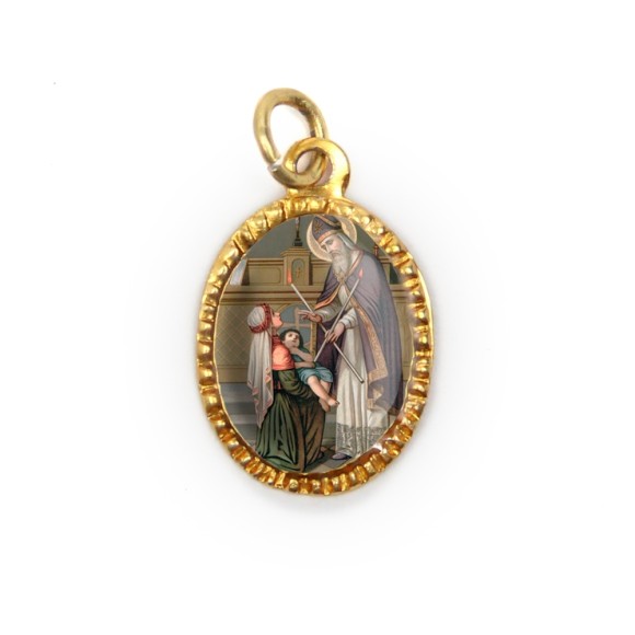 *Medalha de Alumínio Oval Dourada c/ 10un. São Brás - 2X1,3cm.
