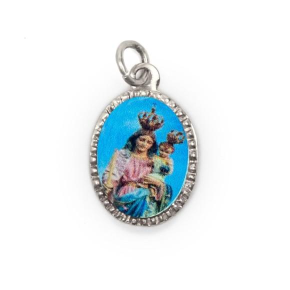 *Medalha de Alumínio Oval Prata c/ 10un. N. Sra. Da Luz - 2x1,3cm.