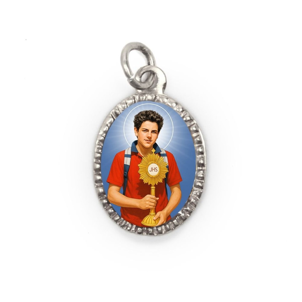 MD103852P10 - Medalha de Alumínio Oval Grande Prata c/ 10un. São Carlo Acutis - 2x1,3cm