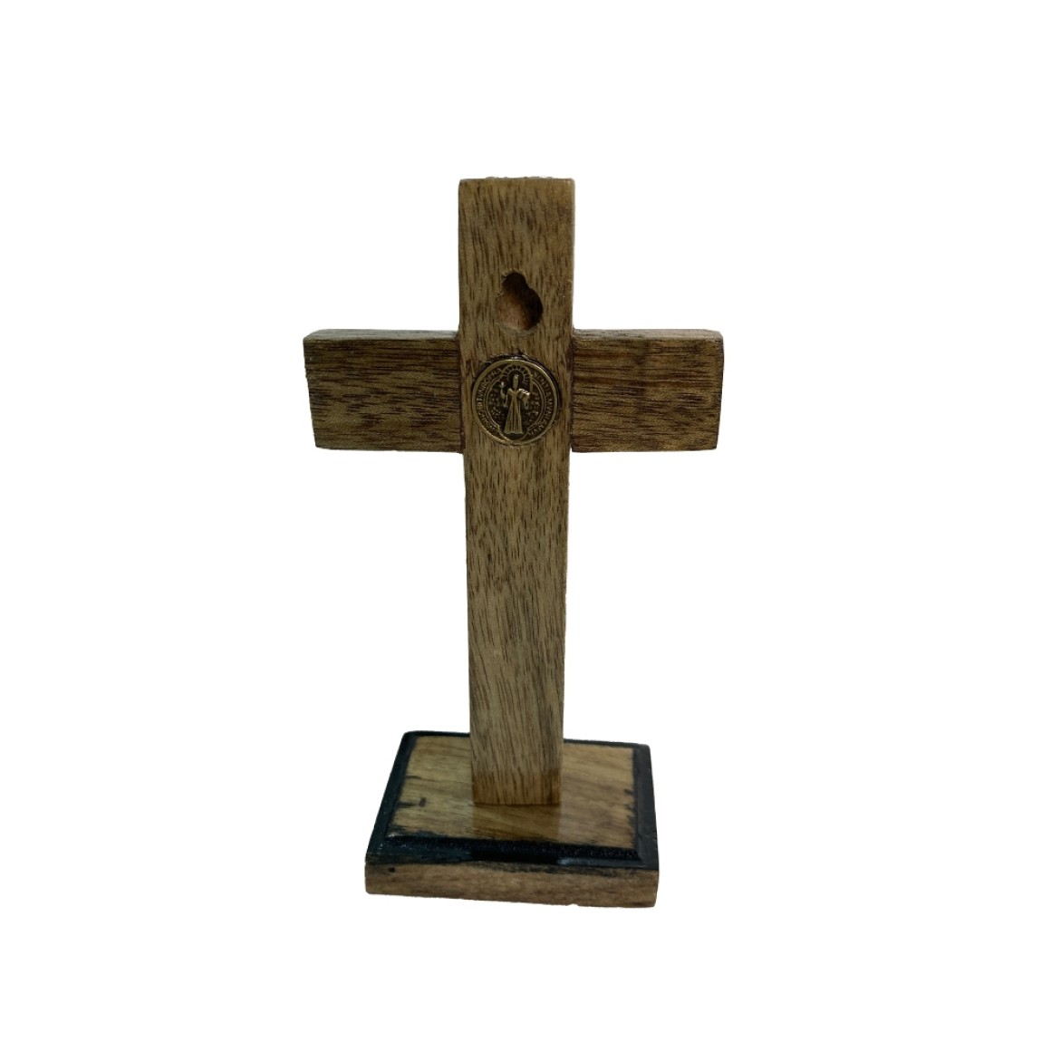 *Crucifixo de Mesa São Bento Madeira - 15x7,5cm (5235).