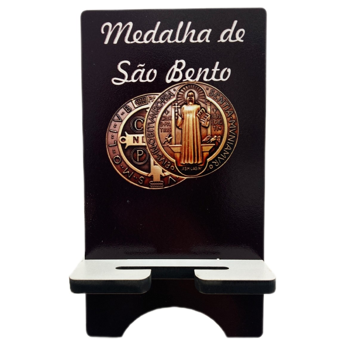 *Porta Celular Medalha de São Bento MDF - 17x9,5cm.