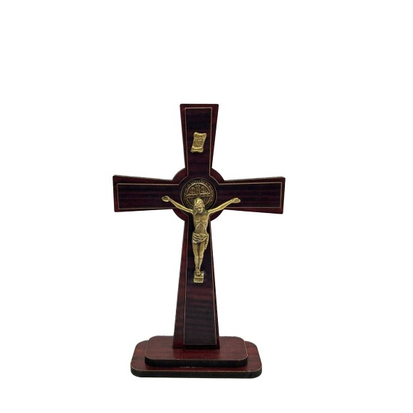CU760480 - Crucifixo de Mesa São Bento Madeira - 19,5x12cm