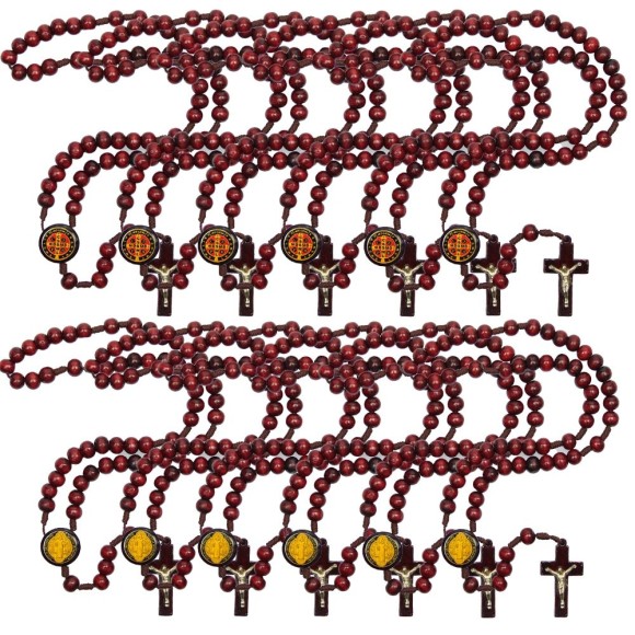 *Terço Medalha de São Bento Madeira c/ 12un. - 37cm.