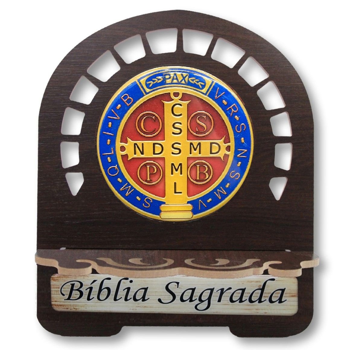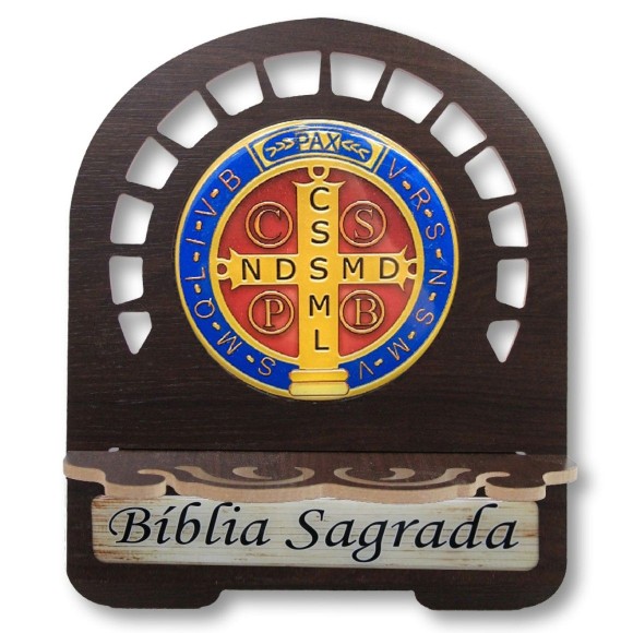 *Porta Bíblia Medalha de São Bento MDF Resinado - 30,5x25,5cm.