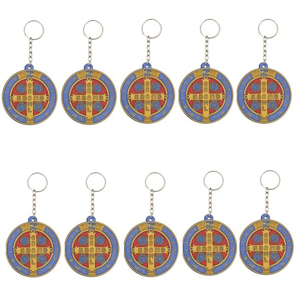 CH50411P10 - Chaveiro Medalha de São Bento Emborrachado c/ 10un. - 11X5cm