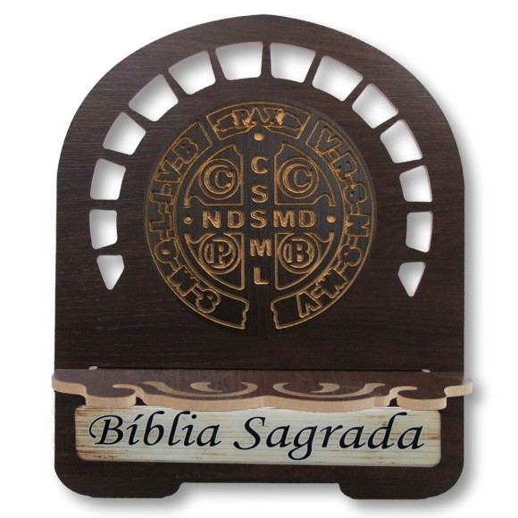 *Porta Bíblia Medalha de São Bento MDF Resinado - 30,5x25,5cm.