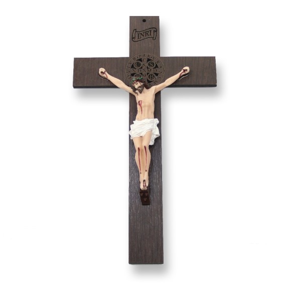 *Crucifixo de Parede São Bento Madeira - 28x16cm.