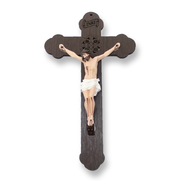 *Crucifixo de Parede São Bento Madeira- 28x16cm.