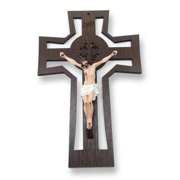 *Crucifixo de Parede São Bento Madeira - 28x18cm.