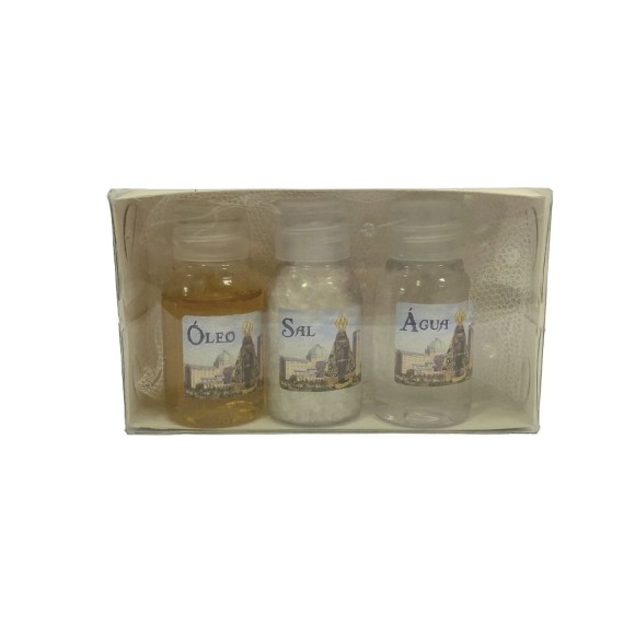 KT750653 - Kit N. Sra. Aparecida - Água Benta + Sal Grosso + Óleo