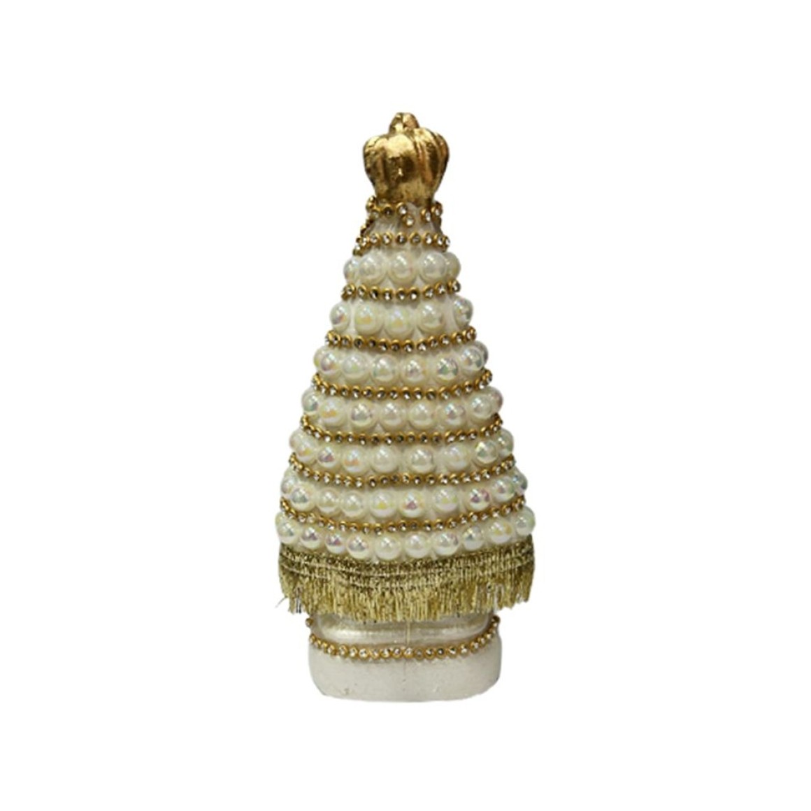 2. IM100304 - Imagem N. Sra. Aparecida c/ Pérola Branca Furta-cor e Strass Dourada - 16x9cm