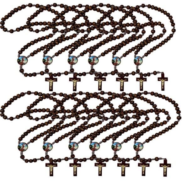 TE940410P12 - Terço São Jorge Madeira c/ 12un. - 37cm