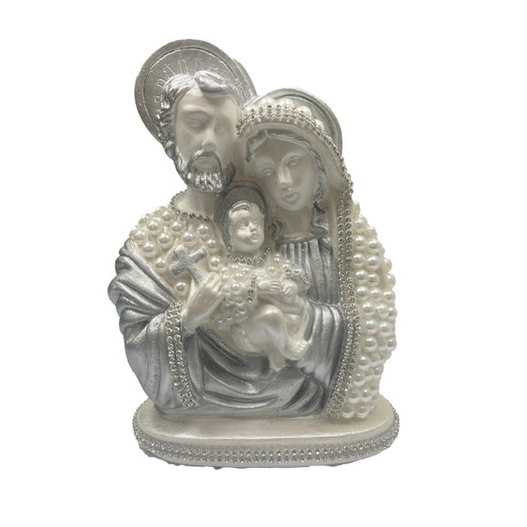 IM53055 - Imagem Sagrada Família c/ Pérola e Strass Prata - 20x15cm