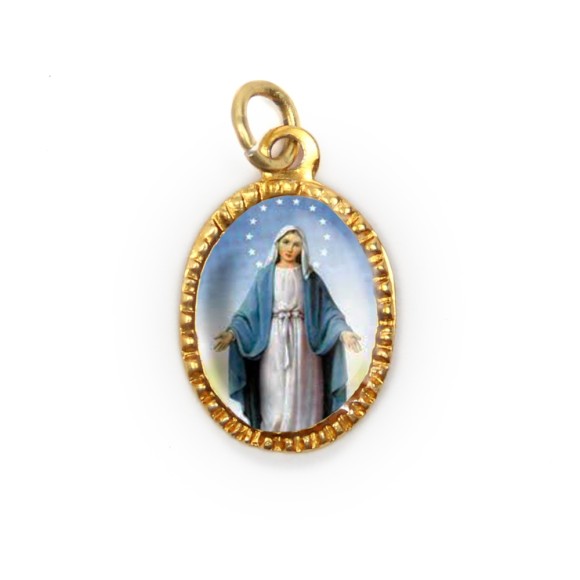 MD520035P10 - Medalha N. Sra. Das Graças Alumínio Oval Dourada c/ 10un. - 2X1,3cm