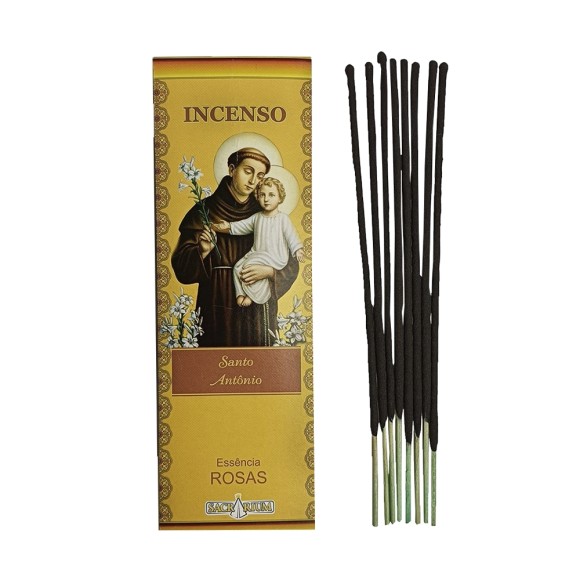 *INCENSO perfumado com aroma de Rosas, Santo Antônio com Oração no verso, com 8 varetas de longa duração.