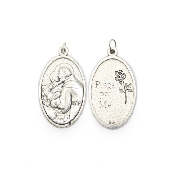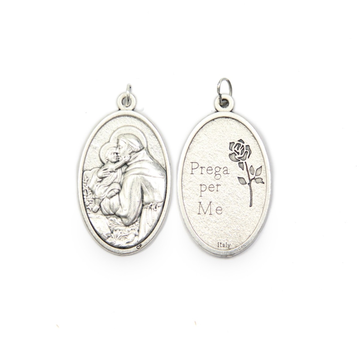 *Medalha Santo Antônio Italiana Oval Prateada - 4,5x2,6cm