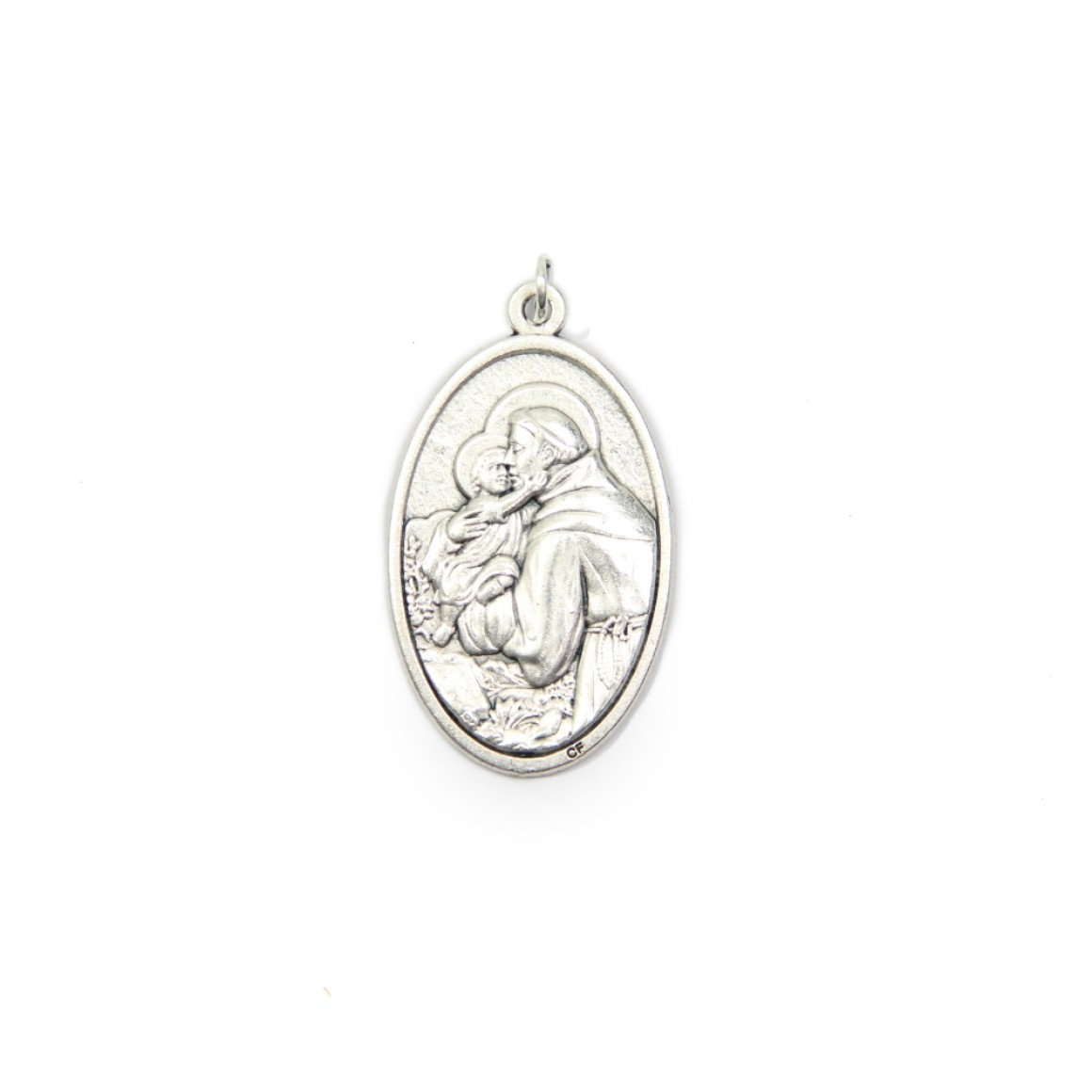 2. MD1190100 - Medalha Santo Antônio Italiana Oval Prateada - 4,5x2,6cm