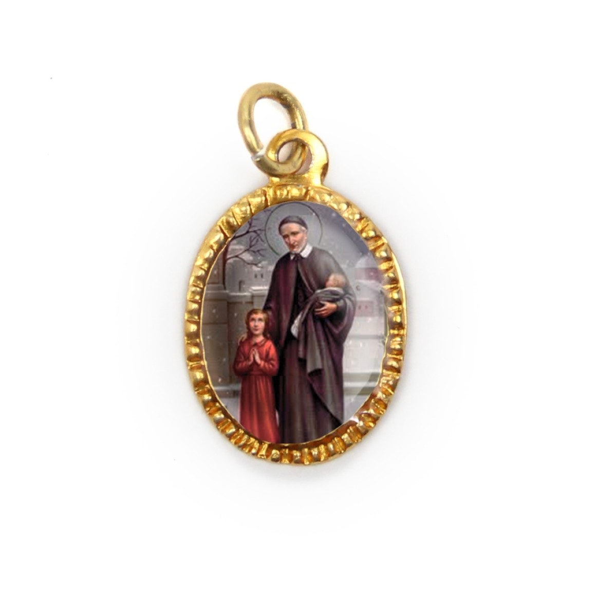 MD103275P10 - Medalha de Alumínio Oval Dourada c/ 10un. São Vicente de Paulo - 2X1,3cm