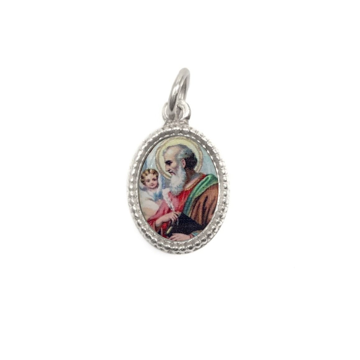 *Medalha de Alumínio Oval Pequena Prata c/ 20un. São Mateus - 1,5x1cm.