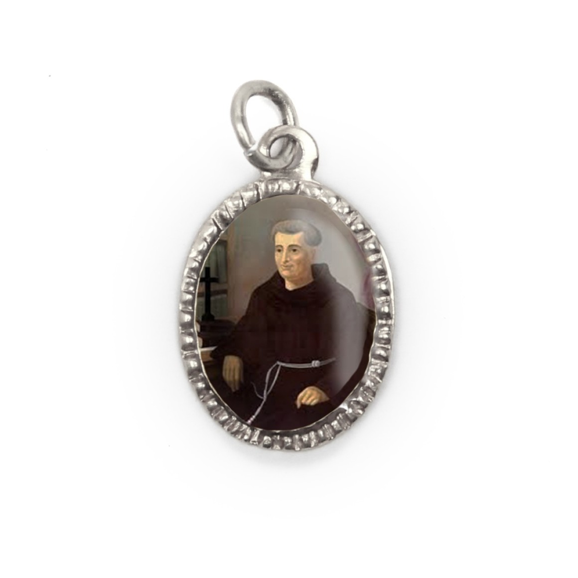 MD103803P10 - Medalha de Alumínio Oval Prata c/ 10un. São Frei Galvão - 2x1,3cm