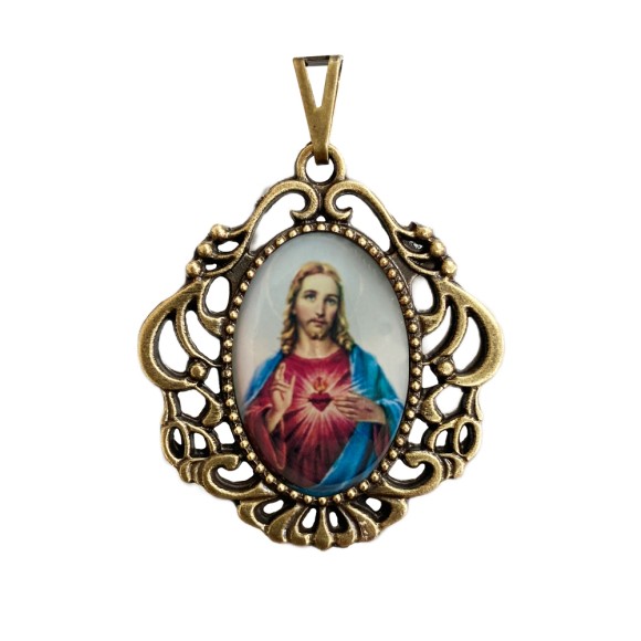 *Medalha Sagrado Coração de Jesus Camafeu Ouro Velho - 5,5x4,2cm.