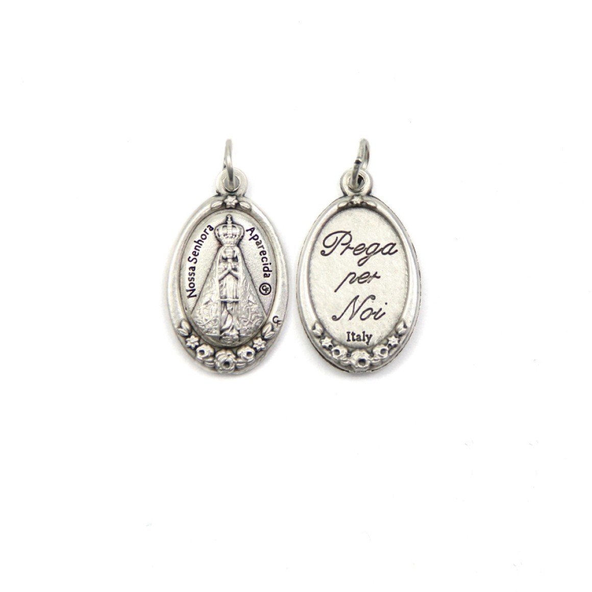 2. MD1180020 - Medalha N. Sra. Aparecida Italiana Oval Prateada - 2,5x1,7cm