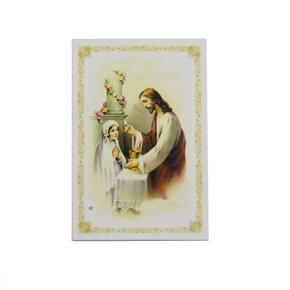 *Cartão c/ 12un. Lembrança Primeira Eucaristia Menina - 9,5x6,5cm.