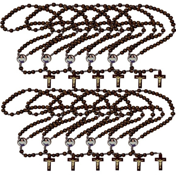 TE940333P12 - Terço Santa Dulce dos Pobres (Irmã Dulce) Madeira c/ 12un. - 37cm