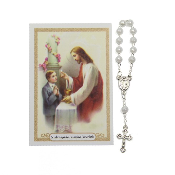 *Cartão Lembrança Primeira Eucaristia Menino c/ Dezena - 9,5x6,5cm.