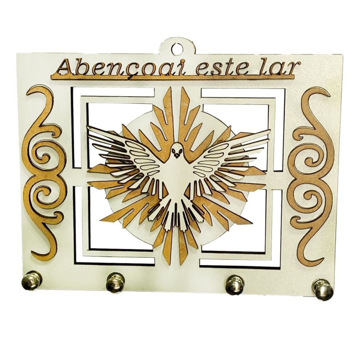 * Porta Chaves Divino Espírito Santo MDF Branco - 17x14cm .