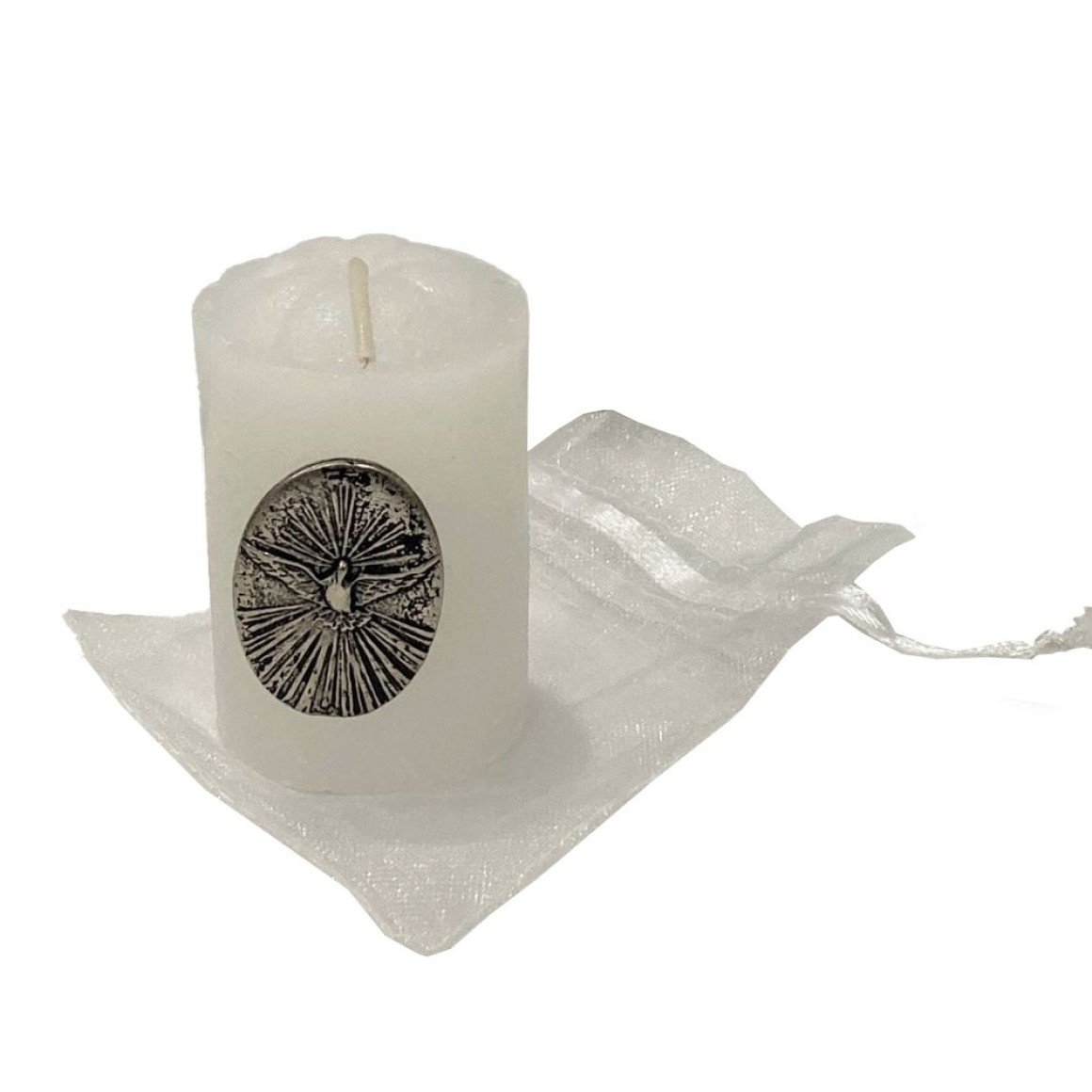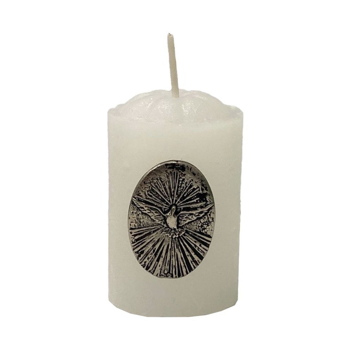 VE750320 - Vela Divino Espírito Santo c/ Pingente Níquel Envelhecido - 6x4cm