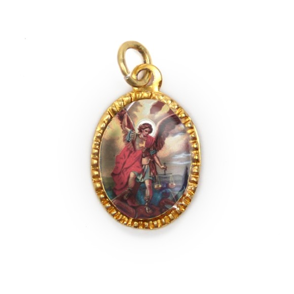 MD103409P10 - Medalha de Alumínio Oval Dourada c/ 10un. São Miguel Arcanjo - 2X1,3cm