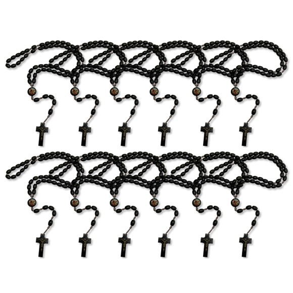 TE330082P12 - Terço São Miguel Arcanjo Madeira c/ 12un. - 45cm
