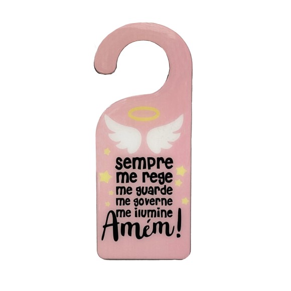 PLC199305 - Placa Anjo Rosa para Maçaneta de Porta MDF - 18x7,3cm