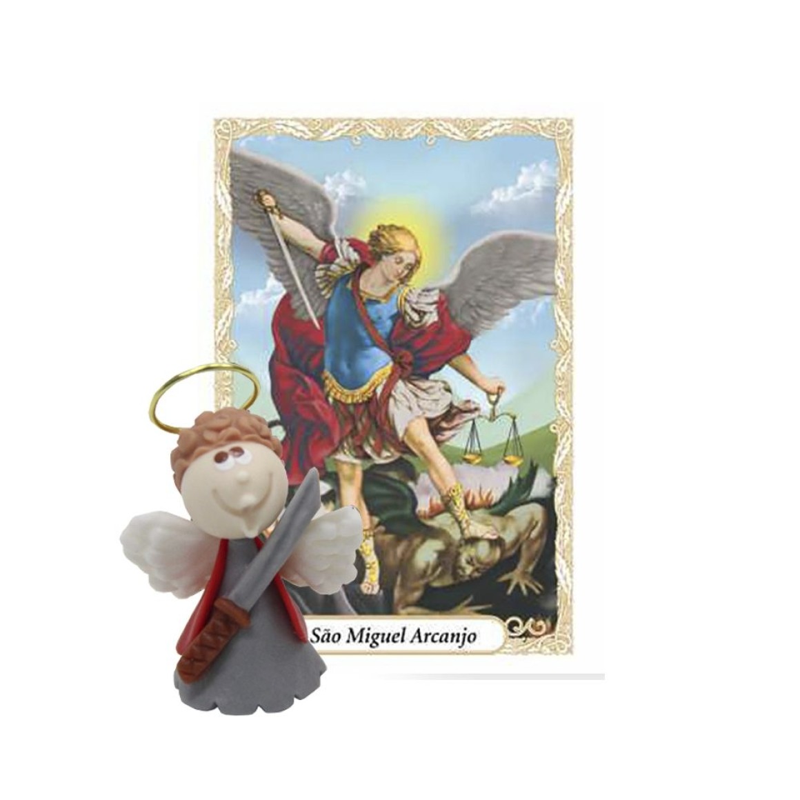 *Mini Santinho São Miguel Arcanjo de Biscuit c/ Oração.